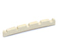 High-quality Micarta (simulated bone) string nut for electric bass, with 9.5" radius. Pre-slotted with string location points to make spacing and positioning a breeze when performing the final nut slot filing. 9.5" radius, approximately 1.875" (47.6 mm) wide. Used on 5-string (US and Mexico) Fender basses.